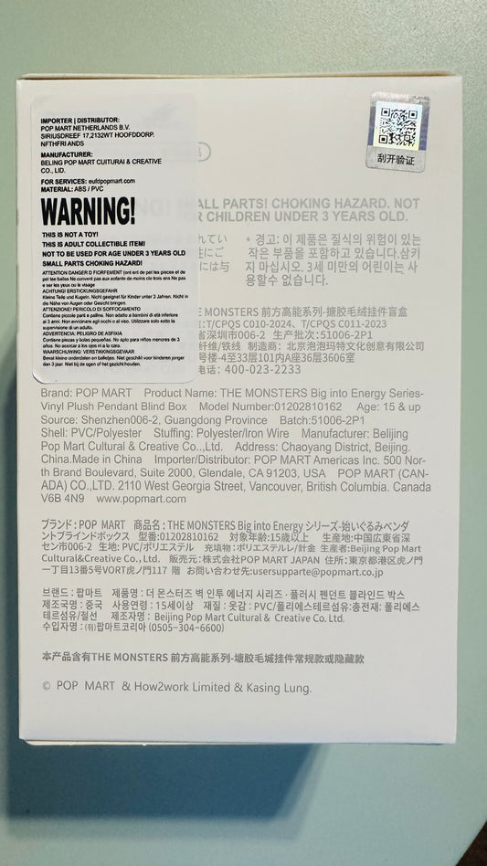 LABUBU Peluche Pop Mart Big Into Energy Portachiavi Giocattolo da Collezione V3